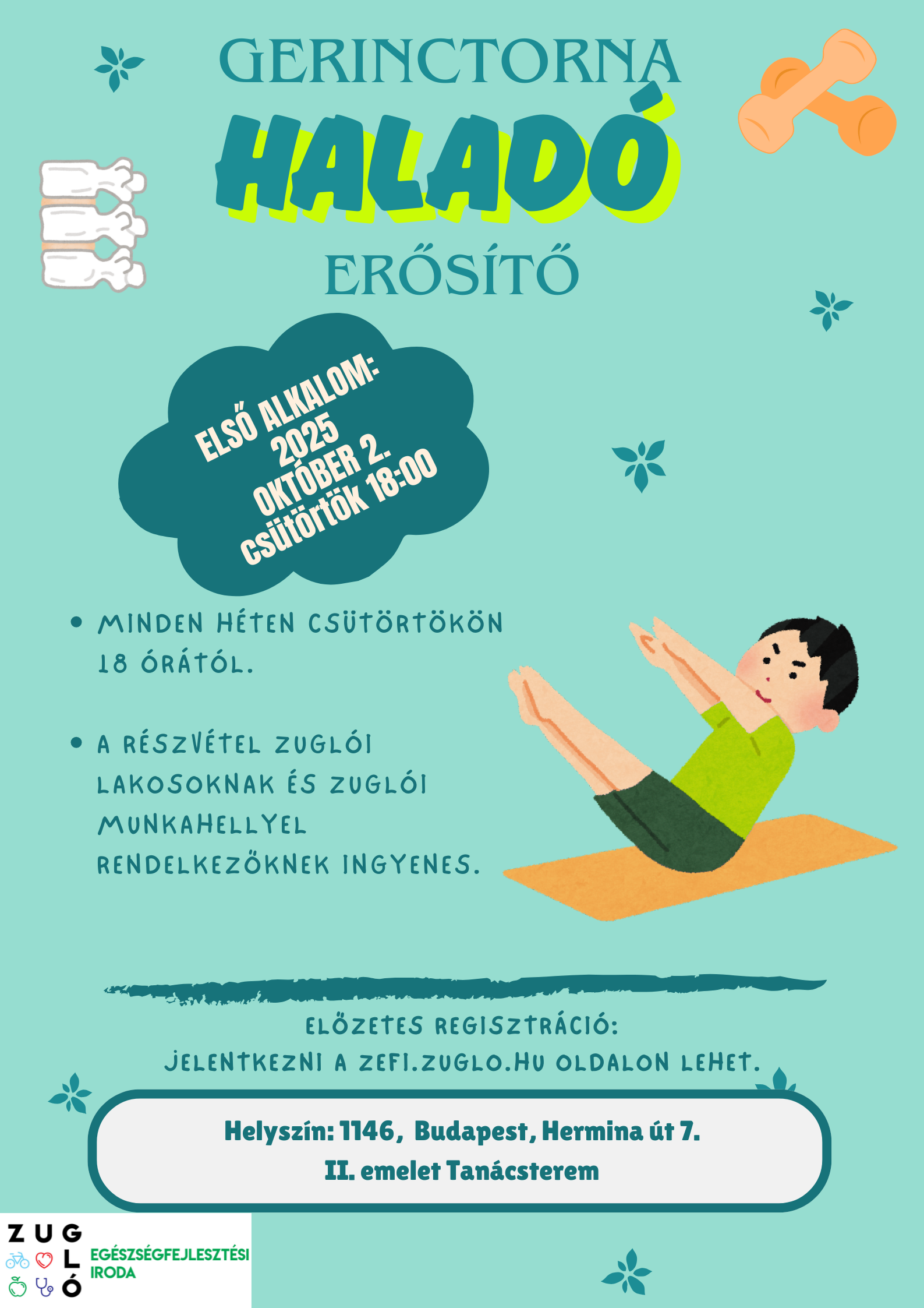 Új Haladó (erősítő) gerinctorna csoport indul a ZEFI-nél! Szeretettel várunk titeket minden csütörtökön 18:00:tól.