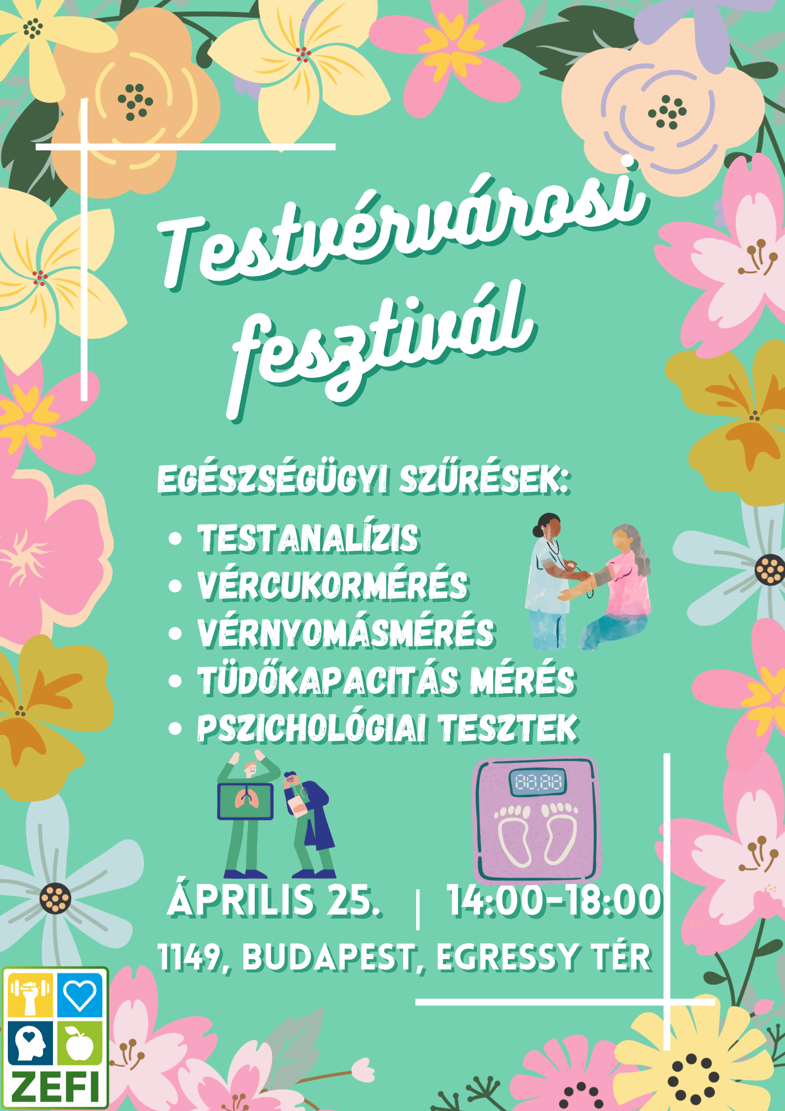 Csatlakozzatok hozzánk a 2026-os Testvérvárosi fesztiválon, ahol a renegeteg ingyenes program (zenés fellépések, táncbemutatók, családi programok) mellett a ZEFI az alábbi szűrővizsgálatokkal fog készülni: