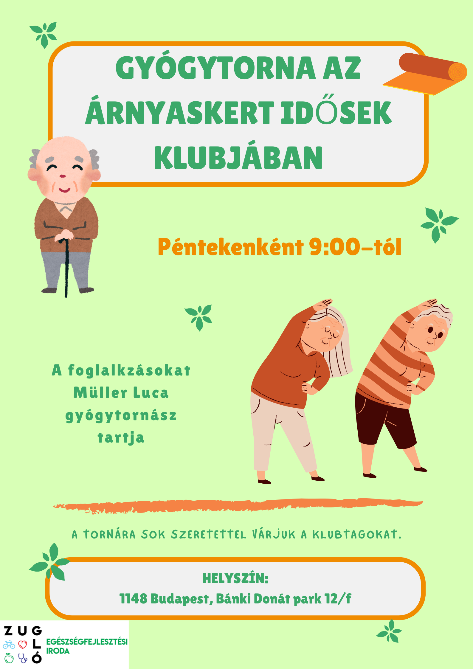 Müller Luca gyógytornász szenior tornája az Árnyaskert Idősek Klubjában, kétheti gyakorisággal