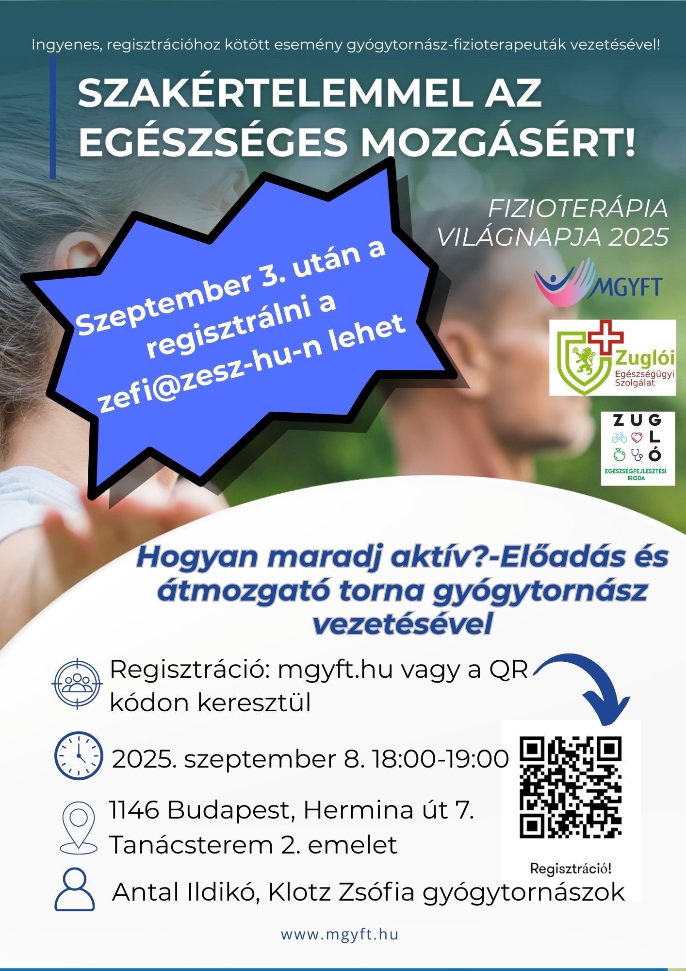 Tanulj szakértéktől az egészséges mozgásról, csatlakozz hozzánk a Fizioterápia Világnapján és tegyünk együtt az egészségünkért! Várjuk Önöket szeretettel!