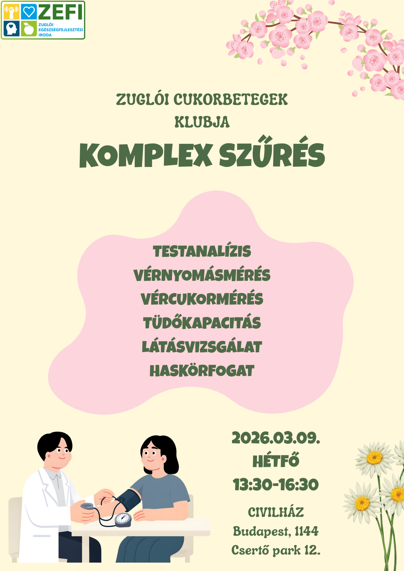 A márciuis alkalommal Komplex szűrővizsgálatok lesznek.